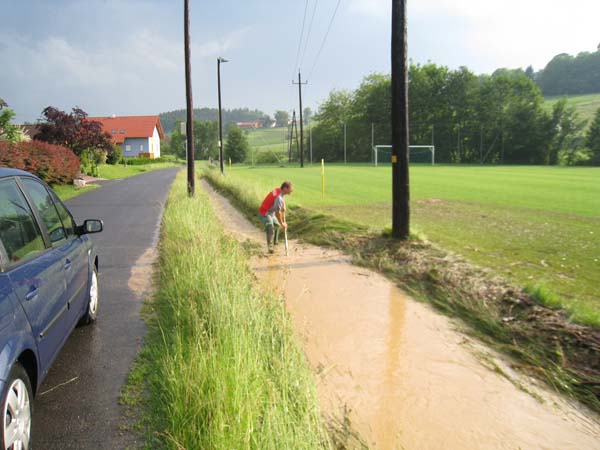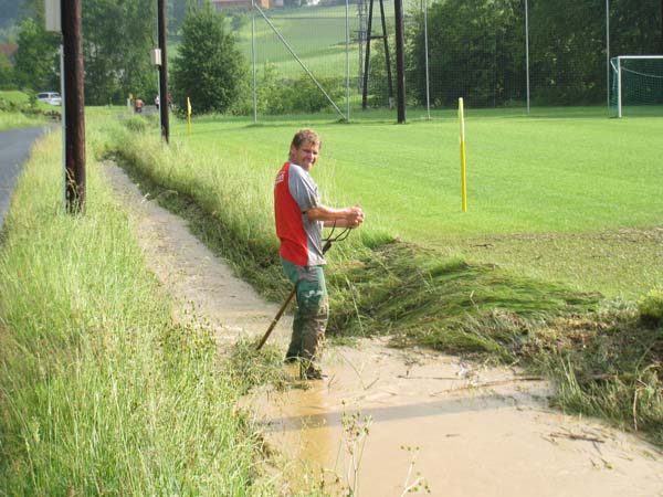 Am 25.05.2009 wurde durch starken Gewitterregen beinahe der neue Sportplatz in Schützing überflutet. Durch das beherzte Eingreifen unseres Kameraden Hermann Gutmann konnte ein Schaden abgewendet werden.