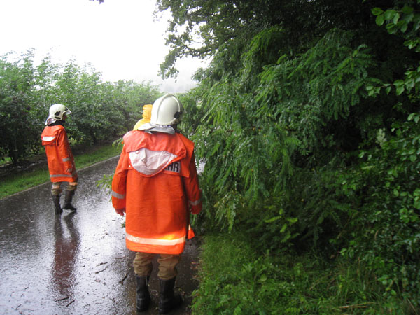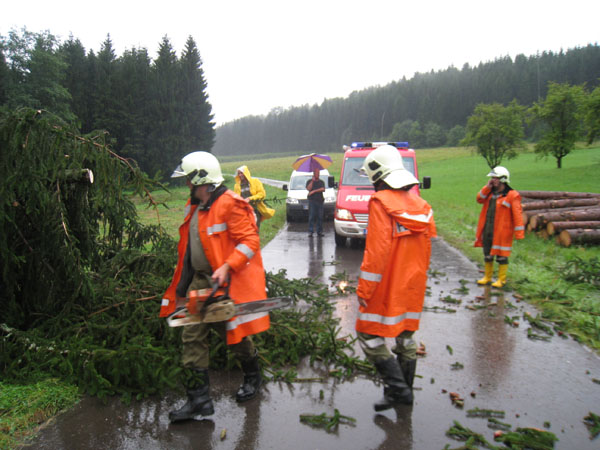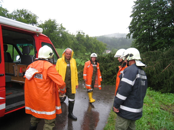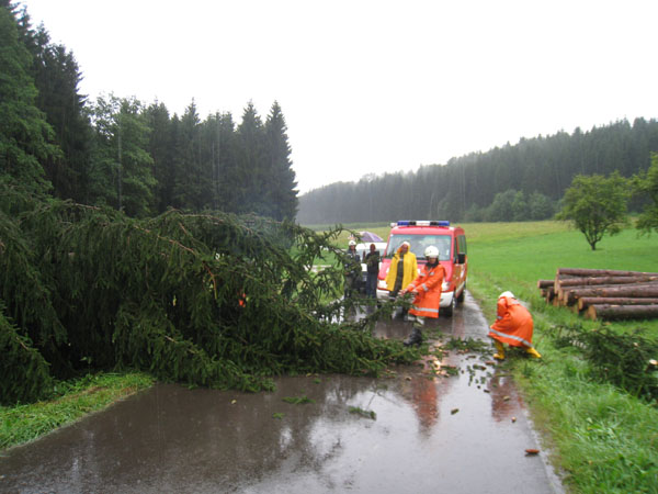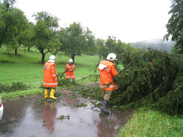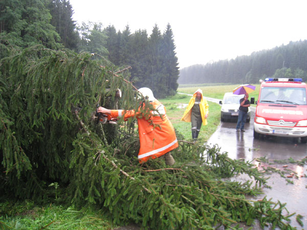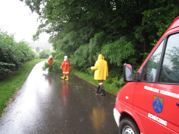 Beim neuerlichen Unwetter am 04.08.2009 rückte unsere Wehr abermals aus. In Dörfl musste ein umgestürzter Baum von der Straße entfernt werden. In Schützing, nähe Sportplatz, wurde mit zwei Schmutzwasserpumpen ein Kanal, der sich zurückstaute und überzugehen drohte, ausgepumpt.