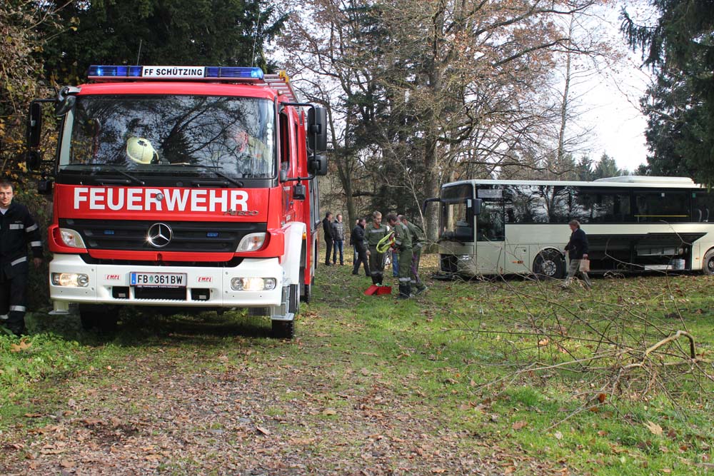Am 18.11.2012, um 12.55 Uhr, wurde unsere Feuerwehr zu einer Bus-Bergung beim Schloss Kornberg alarmiert. TLF und MTF Schützing rückten innerhalb kürzester Zeit aus.