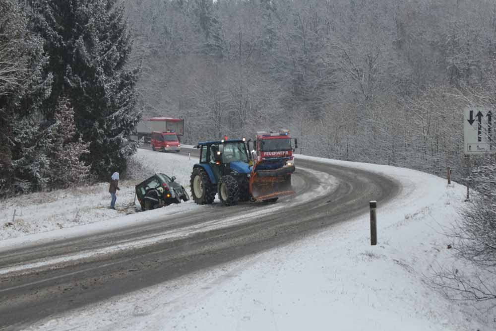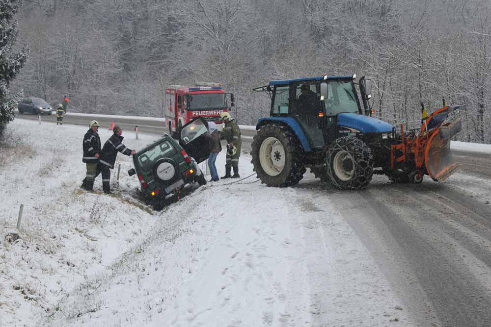 Am 29.01.2015 um 12.27 Uhr wurde unsere Wehr zu einer Fahrzeugbergung alarmiert. Aufgrund der winterlichen Fahrbahnverhältnisse ist ein Fahrzeug auf der B66, "Kornberger Leit'n", in den Straßengraben gerutsch. Die Insassen blieben unverletzt.