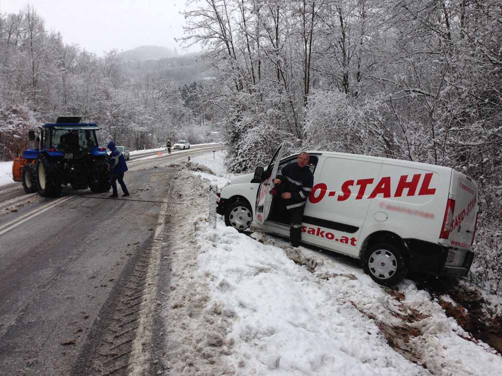 Am 30.01.2015 um 13.20 Uhr wurde unsere Wehr zu einer Fahrzeugbergung alarmiert. Aufgrund der winterlichen Fahrbahnverhältnisse ist ein Fahrzeug auf der B66, "Kornberger Leit'n", in den Straßengraben gerutsch. Die Insassen blieben unverletzt.