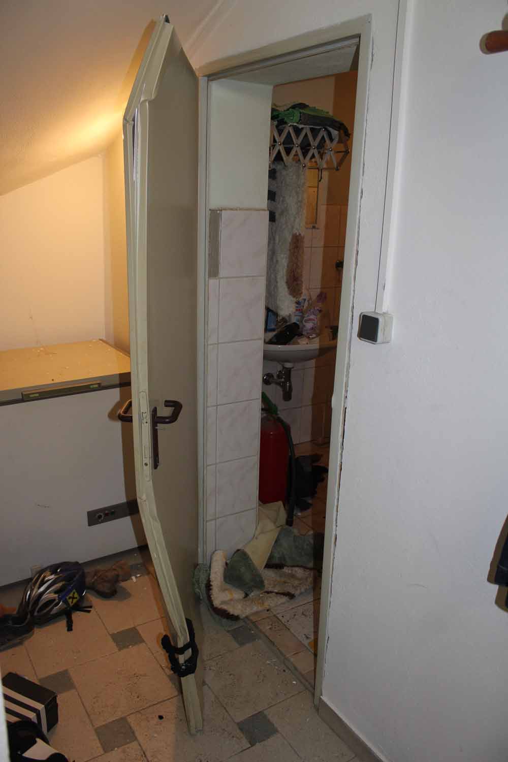 Als Erstmaßnahme wurden die Räume gründlich belüftet. Die Explosionsursache wurde ins Freie verbracht.