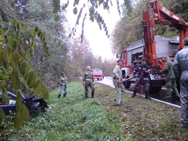 Am 24.10. um ca. 11.15 Uhr kam es beim auf der B66 ("Kornberger Leitn") in Schützing zu einem Unfall mit einem PKW. Der PKW kam auf der abschüssigen Straße in einer Kurve von der Fahrbahn ab und blieb im angrenzenden Wald stehen. Die Feuerwehr Schützing wurde um 11.21 Uhr alarmiert und rückte mit 8 Mann und KLF aus.