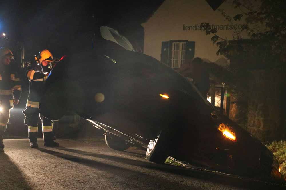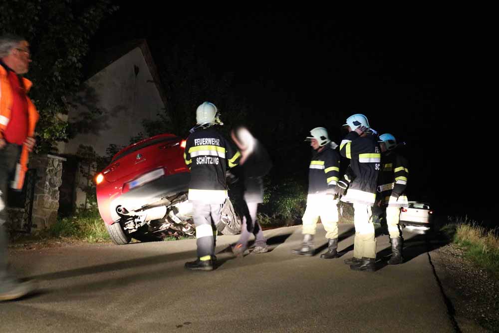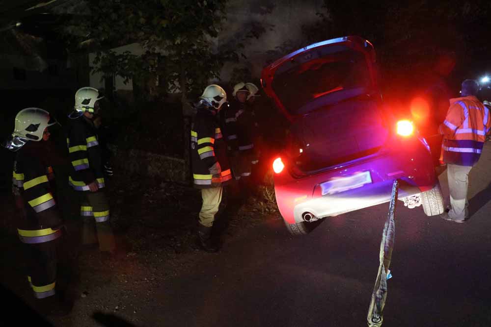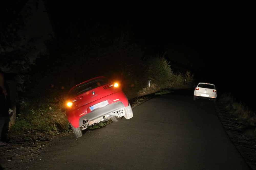 Um der steilen Böschung auf der gegenüberliegenden Straßenseite nicht zu nahe zu kommen blieb der Lenker des Unfallfahrzeuges sicherheitshalber etwas weiter vorne – leider war hier ebenfalls ein Straßengraben. Fahrer, sämtliche Insassen sowie das Fahrzeug konnten nach der schonenden Bergung die Fahrt unbeschadet fortsetzen.