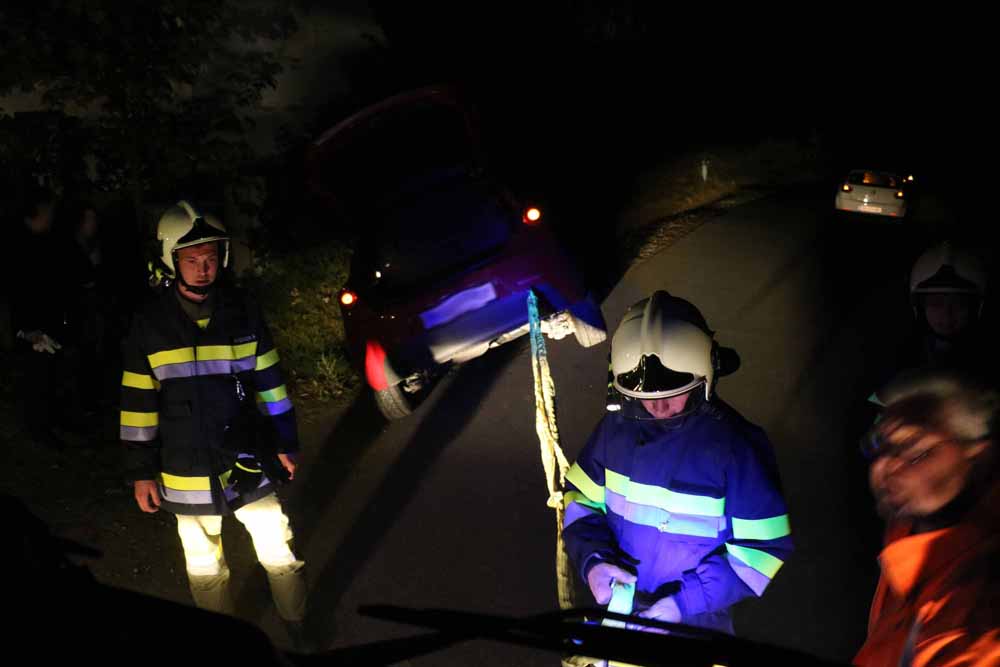 Fahrzeugbergung aus dem Straßengraben bei den Ferienwohnungen der Fam. Liendl am Abend des 14. Oktober.