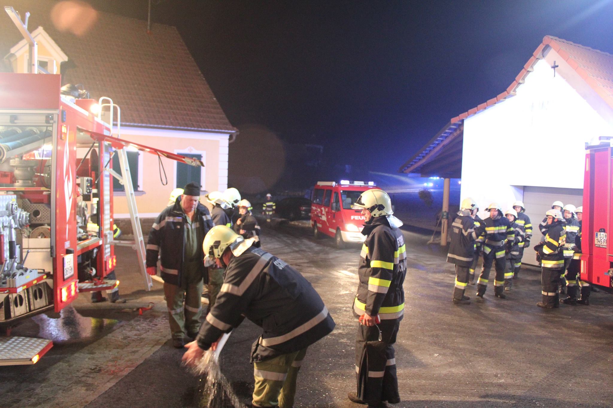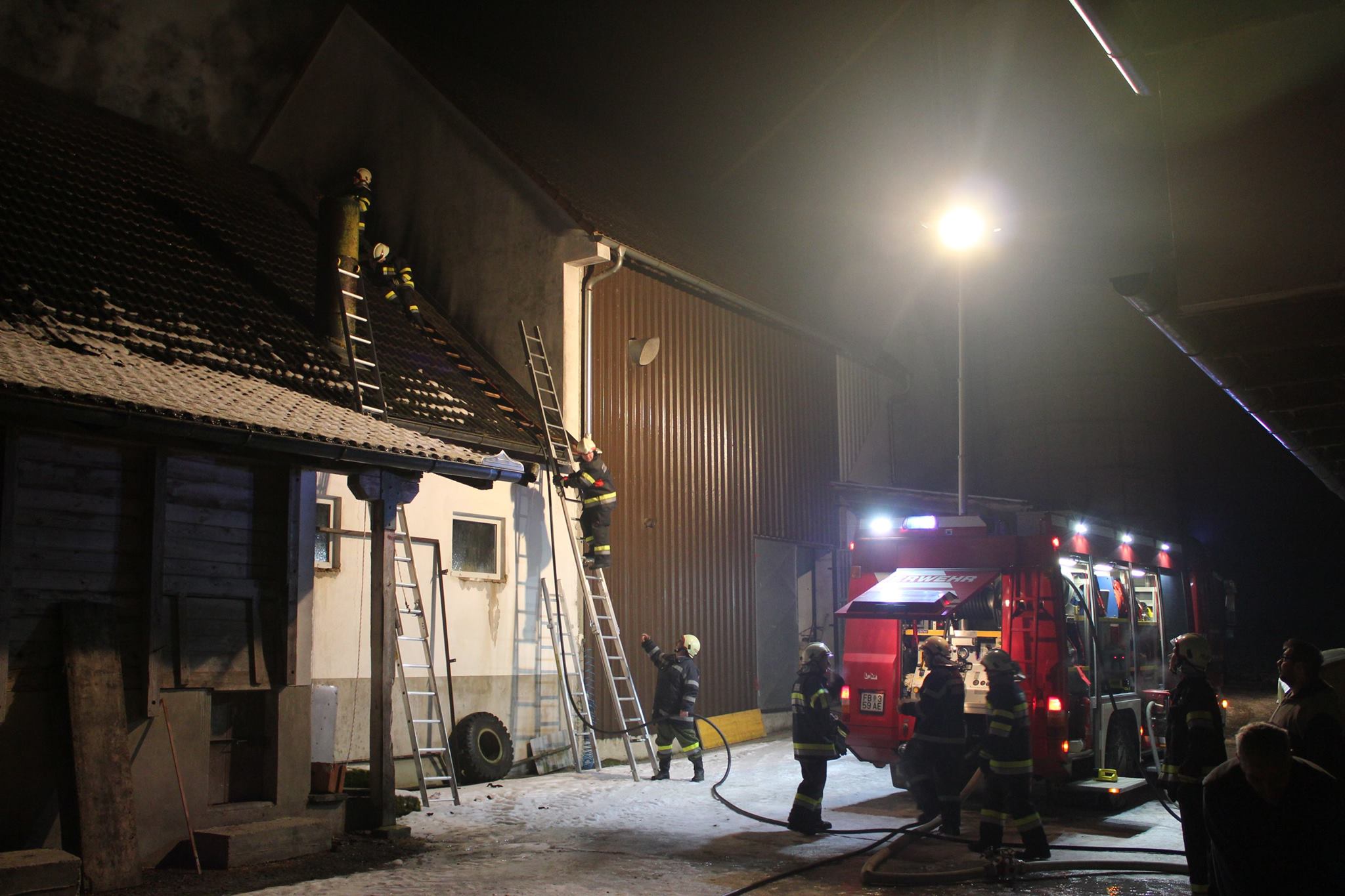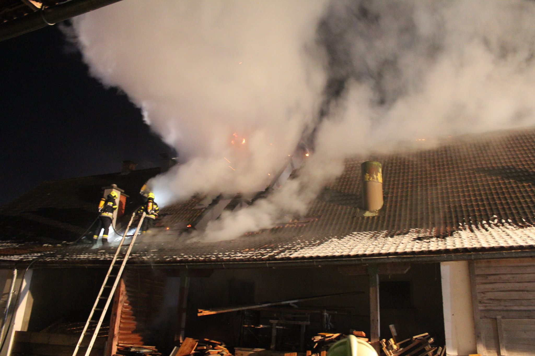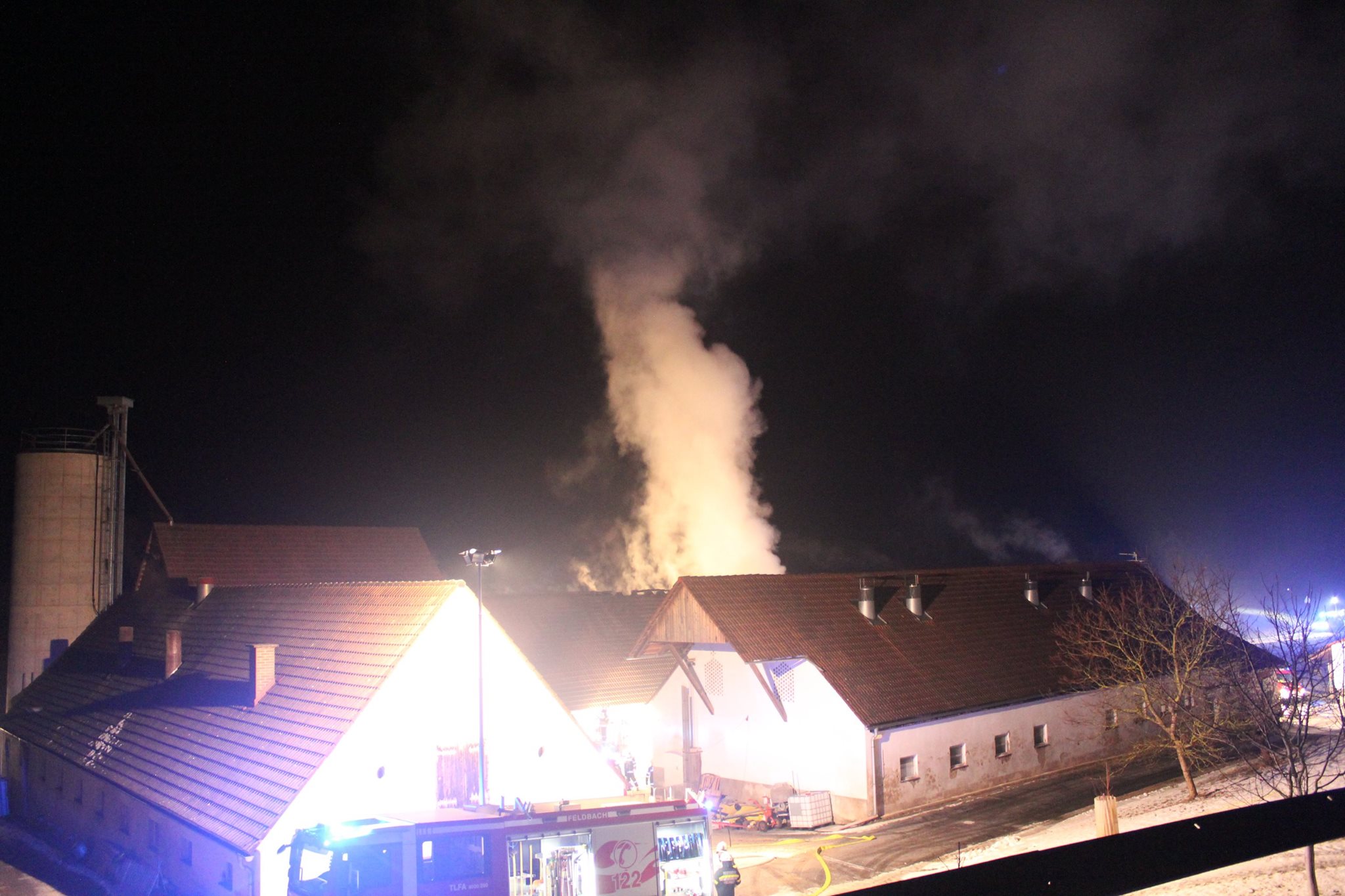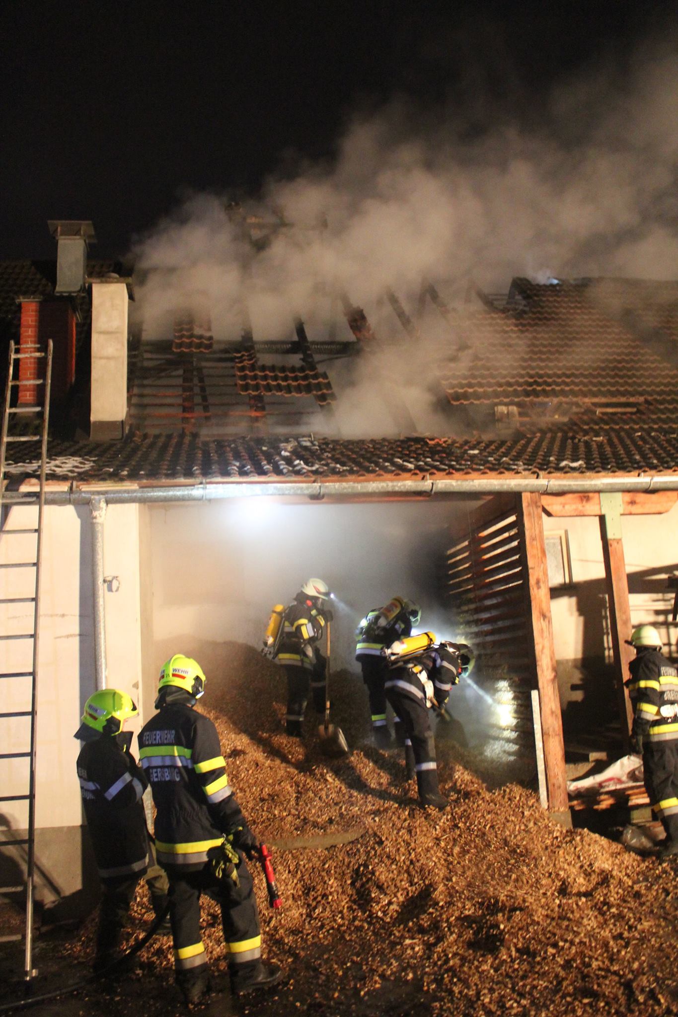 Die Feuerwehren Schützing, Kornberg-Bergl und Riegersburg wurden am frühen Morgen des 04.02.2017 zu einem Wirtschaftsgebäudebrand gerufen. Bereits auf der Anfahrt war der brennende Dachstuhl von weitem ersichtlich, darum wurden gleich umliegende Tanklöschfahrzeuge nachalarmiert. So konnte mit Hilfe aller eingesetzten Kräfte gerade noch eine weitere Ausbreitung des Brandes und somit größerer Schaden verhindert werden.