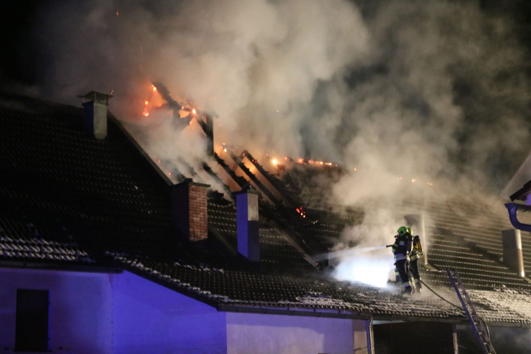 Eingesetzt waren sieben Feuerwehren mit 107 Mann, Polizei und Rotes Kreuz.